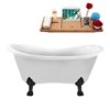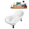 Streamline 31W x 62L Glossy White Acrylic Clawfoot Bathtub with Matte Black Feet and Reversible Drain with Tray