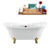 Streamline 34-in x 68-in White and Brushed Gold Acrylic Oval Clawfoot Bathtub with Matte Oil-Rubbed Bronze Centre Drain and Tray