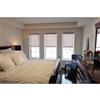 These 39" x 72" cordless designer looking shades provide great harmony between privacy, light control and style. Their satin back has a shiny appearance that adds an elegant appeal to these roller shades. Comes with a sturdy aluminium curved cassette valance with matching fabric inserts for a professional finishing touch. One-Year Limited warranty.
