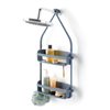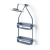 Store all your shower essentials in one place with Umbra’s highly functional Flex Shower Caddy. Flex was designed to take up minimal space in the shower while still accommodating larger bottle sizes. Made of a rigid plastic frame with flexible silicone bands that give plenty of storage options. Flex also features two extra wide plastic shelves to accommodate your shampoo, conditioner and body wash while the four hooks are perfect for loofahs and razors. Utilize the four Bottle Collars to hold your bottles bottom-up, making it possible to dispense every drop, while holding your bottle in place. No need to worry about moisture or product buildup as Flex features an integrated draining system that prevents unwanted mould and mildew. It can be mounted either over the shower head or on the shower curtain rod. Measures 31 x 9 x 65-cm. Made from 90% recycled plastic.
