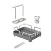 - A customizable dish rack complete with a moveable stemware holder, a multi-use tray with knife organizer, a utensil caddy and moveable drain spout