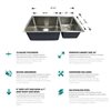 Radius corner undermount sink with 60/40 split featuring a rear-positioned drain to maximize usable bowl space and under-cabinet storage. Crafted from durable 18 gauge 304 stainless steel with a satin finish and smooth 20 mm radius corners for easy cleaning and a modern look. Includes undermount clips, installation template, and strainer. Designed to fit cabinets 34-in and larger, with a 9-in deep bowl for versatile kitchen use.