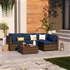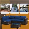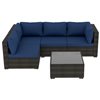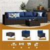 UPHA 5-Piece Patio Wicker Conversation Set with Navy Blue Cushions