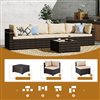 Completed with 2 corner sofas, 3 armless sofas, 1 coffee table, this comfortable 5 pieces outdoor furniture set accommodates 4 people allowing for soaking up the great outdoors. Each piece of the sectional sofa can be moved and combined freely, with a tempered glass-top coffee table, allowing you to use it all year round. With high-quality padded seats and back cushions, you can relax in comfort with family or friends.