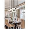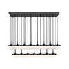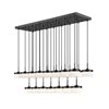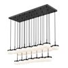 Along its deep inky frame, this matte black 23-light linear LED chandelier lines up glowing glass shades that appear to float in midair across the room. The generous spread of light easily covers long islands, conference tables, or extended dining setups so every seat feels included in the glow.
