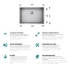Handcrafted undermount sink with radius corners and a rear-positioned drain to maximize bowl capacity and cabinet storage. Made from durable 18 gauge 304 stainless steel, featuring a smooth 20 mm bowl corner radius for a sleek, modern finish. Includes undermount clips, installation template, and a strainer. Designed to fit cabinets 30-in and larger, with a 9-in deep bowl for versatile kitchen use.