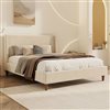 This spacious platform bed frame is designed to bring modern comfort and clean architectural lines into larger bedroom settings. The upholstered frame offers a soft resting surface while the wingback headboard introduces subtle dimension and structure. A platform build supports the mattress directly and simplifies setup by removing the need for a box spring. Engineered for durability and everyday use, this bed frame integrates seamlessly into contemporary interiors while providing reliable support and visual balance.
