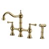 Mondawe Modern Bridge Swivel 2-Handle Kitchen Faucet with Sprayer - Brushed Gold