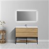 Transform your bathroom into a refined retreat with the Luxen Collection’s 48-in Freestanding Vanity in Sunset walnut. The rich wood tones bring warmth and elegance, while the crisp white polymarble countertop offers a fresh, contemporary contrast. Designed with two spacious drawers and an open shelf, this vanity strikes the perfect balance between hidden storage and display space. Its freestanding build adds timeless character, making it a versatile choice for both classic and modern bathroom designs.