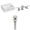 It features a rectangle shape. It is designed to be installed as a wall mount vessel set. It is constructed with ceramic and it comes with an enamel glaze finish in white colour for a 3h8-in. faucet.