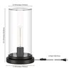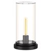 - Paired with a cylindrical clear glass shade; shade features a small opening in the top