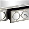 - Features white wood circle trellis pattern overlay, table includes 1 drawer in center, mirror includes hanging hardware