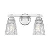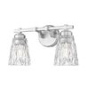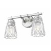 Double the level of illumination in a master or guest bath space with a 2-light vanity bath light focused on sophisticated style. Glam influence mixes textural diamond patterning on clear glass conical shades, with tasteful brushed nickel finish metal framing is both versatile and beautiful. Dimming options increase functionality in a light fixture with a timeless design.