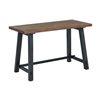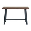 - Rustic industrial style with natural solid wood tops and distressed black legs
