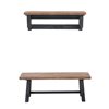 - Rustic industrial style with natural solid wood tops and distressed black legs