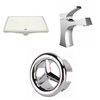 - This set includes: 1 bathroom sink in biscuit, 1 faucet in chrome, 1 overflow cap in chrome