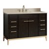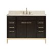 This Hepburn single vanity by Avanity® will add a touch of elegance to your bathroom. The vanity features a solid ash wood frame, matte gold hardware and dark chocolate finish. The cream coloured marble counter top features a rectangular undermount sink. This product is manufactured from premium materials and has a sturdy matte gold base. The drawers and cabinets are equipped with soft-close glides and hinges. Pair with the Hepburn linen tower and mirror for the complete look. Faucets not included.