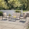CorLiving Eden Metal Frame Patio Conversation Set with Beige Cushions - 4-Piece