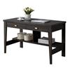 Add a touch of style in your home with this inviting Folio desk from the CorLiving® Collection. This functional item is featured in black espresso faux wood finish accented with antique nickel finish pulls. Featuring two drawers where you can tuck your laptop out of sight and a lower shelf with extra storage space, timeless in style so it easily fits in a variety of decor settings. The desktop offers plenty of room to spread out homework or rest a laptop. The perfect practical addition in your home offering great value.