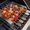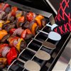 - Raised stand prevents kabobs foods from sticking to grill grates