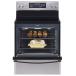 Make food preparation fast and convenient with this GE Appliances electric convection range. The glass-ceramic cooktop has four burners of different sizes, which allow you to make assorted dishes simultaneously. With a hot surface indicator light, you know if the elements are safe to touch to avoid accidental burns. This GE kitchen range also boasts a single-fan convection oven with six positions for a quick and even bake or roast. Digital display and controls simplify precise temperature and timer change. A 30-minute steam clean cycle eliminates scrubbing of drips and splatter. Boost your kitchen's safety with features such as the oven door lock and automatic shut-off. Enhance a contemporary kitchen with the sleek finish of this stainless steel convection range. This freestanding model measures 30 in W x 47 in H x 26 1/4 in D and has a 5 cu. ft. capacity. Each unit comes with a 1-year limited warranty on labour and parts.
