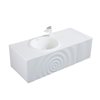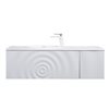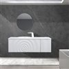 Valerie your bathroom with the Valeria Collection, where modern minimalism meets innovative design in a sleek Matte White Wall Hung Vanity. This collection stands out with its clean lines and pristine finish, enhancing any bathroom space. Its floating design not only saves space but also contributes to a more open feel, ideal for any bathroom size. The Valeria Collection features a unique solid surface countertop that combines concave and convex shapes, adding a stylish and functional touch. The integrated circular sink in matte white merges smoothly with the countertop for a unified, modern look.