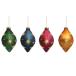 Add sparkle and shine to your tree with this set of four pendant shaped glass ornaments in matte and metallic finish.