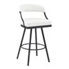 Upgrade your seating situation with the Oxton II Collection. This sleek bar height chair is the perfect companion for your bar height table or kitchen island. Boasting a swiveling semicircular seat with 360° rotation and a contoured back with a stylish lumbar cutout, this elevated seat offers both comfort and style. Upholstered in luxurious faux leather for a touch of modern sophistication, the durable metal framing in a trendy gunmetal finish adds an industrial-chic vibe that ties the look together in a way that’s sure to impress. Pragmatically designed with a built-in foot rail for added support, the Oxton II is as practical as it is sharp and is perfect for entertaining guests or enjoying a casual meal in style. Available in black, grey, red, or white.