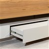 - Includes 3 full extension drawers and 1 long shelf for media devices