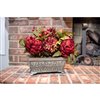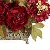 Provide a warm welcome to the holiday season with this beautiful Peony and Hydrangea artificial arrangement. Bursting blooms of red are surrounded by gold-hued leaves, which provide the perfect backdrop. Lush berries and a stately planter add to the festive look, which will stay fresh year round with nary a drop of water. Makes a great centrepiece.
