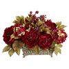 Nearly Natural Hydrangea and Peony Silk Flower Arrangement - 18-in - Red