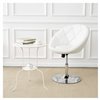 Create your contemporary living space with this rounded Leisure bar stool. This chair adds a modern touch to any space. Button-tufted swivel chair in white leather-like vinyl with chrome base. The rounded back also lines as the armrests as well. Features a 360-degree swivel mechanism to give you more control of movement.