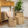 Add old-fashioned country charm to your home with this lovely basket set. These simple wicker-style baskets are a wonderful rustic addition to the living room, kitchen and bedroom. It is great as a functional piece to store mail blankets or as a simple accent piece by itself. Features: Sturdy wicker baskets have a woven design. Large handles for easy carrying. Beige with a square shape. Can hold various items. Easily nests inside the largest for easy storage. Recommended for indoor use only. Dimensions: Small: 12-in H x 9.5-in W x 10.5-in D; Medium: 14-in H x 11-in W x 12-in D; Large: 15-in H x 12-in W x 13-in D; Extra-large: 17-in H x 14.5-in W x 14-in D. Material(s): seagrass