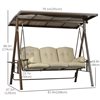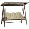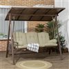Outsunny 3-Seat Outdoor Swing Glider with Adjustable Canopy and Polyester Cushions - Brown/Beige