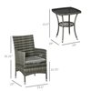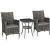 Outsunny Grey Wicker Bistro Set with Grey Cushions Included - 3- Piece