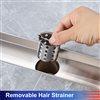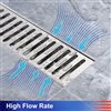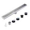 The linear format of this RAINLEX Stainless Steel Tile Insert Linear 24-in Grid Shower Drain offers a decorative solution to standard shower plumbing fixtures. With a sleek, sophisticated profile that maximizes both form and function, the long rectangular drain format removes water from the shower pan with ease. A removable strainer basket prevents pipes from clogging while the versatile drain configuration can be installed with a square grid pattern panel or without. The industrial-inspired design provides a seamless transition from drain to shower floor to create the ultimate at-home spa experience. A tile-in option allows for an integrated shower floor design that coordinates beautifully with modern floors, including large format decorative tile and natural stone as well as mesh-mounted mosaics.