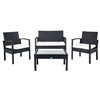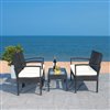 Safavieh Bassey Metal Frame Patio Conversation Set with Cushions - Black/Off-White - 4-Piece