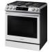 Bring more style, convenience and flexibility to your kitchen with the Samsung slide-in gas range. It adds a modern, built-in look and offers an intelligent user experience, a simple and intuitive way to cook. A 22K double burner also delivers powerful heat and precise control for fast and even cooking while the cooking controls conveniently placed at the front make cooking safer. The illuminated knobs add convenience and a precise cooktop control. This large capacity oven also offers true convection and the air fry feature, so you can enjoy healthier, crispy fried food. Enjoy more ways to cook grilled food with the reversible griddle and more usable cooking space with the edge-to-edge grate.