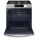 - Slide-in design give your kitchen a premium built-in look with the oven's modern slide-in design. And the cooking controls conveniently placed at the front make cooking safer