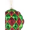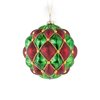 - Ball divided into 7 rows, 4 glossy green, 3 matte red, separated by gold glitter borders with gold spheric beads
