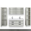 Form meets function with this classic Streamline bathroom vanity. The simple modern lines are accentuated by the integrated sinks and the 2 vertically hanging mirrors that add an elegant touch. The linen cabinets with soft closing doors are spacious enoug