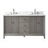 Vanity Art 60 x 22 x 38-in Driftwood Grey Double Sink Freestanding Bath Vanity with Engineered Marble Top