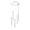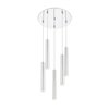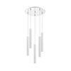 Sleek lines from this five-light pendant fixture marry a rounded base. Chrome radiates throughout any space, adding depth to a modern motif.
