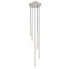 Capture a fresh, refined ambiance with the sleek look and pinpoint illumination of this modern five-light chandelier. A compelling choice for a kitchen, living or dining room, it boasts a clean brushed nickel finish that's sure to complement surrounding decor. Integrated LEDs are housed in long, slim shades and are both dimmable and energy efficient.