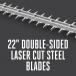 - 22" Double-sided, laser cut steel blades with 1" cut capacity
