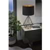 EGLO Pedregal 1 25-in Matte Black Table Lamp with Black and Gold Fabric Shade