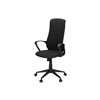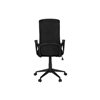 - Transform your workspace with this contemporary office chair featuring a breathable black fabric upholstery complemented by a solid black metal swivel base with smooth rolling wheels
