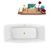 Streamline 28.3-in W x 59.1-in L Acrylic Brushed Gold/White Rectangular Center Drain Freestanding Bathtub with Tray