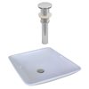 It features a square shape. This vessel set is designed to be installed as an above-counter vessel set. It is constructed with ceramic and it comes with an enamel glaze finish in white colour.