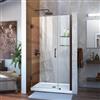 The DreamLine Unidoor is a frameless swing shower door designed in step with modern market trends. The elegant design and an incredible 37-38-in x 72-in conception are combined in the Unidoor for the look of custom glass at an unparalleled value. With clean lines, modern accents and oil rubbed bronze hardware finish this Unidoor shower door adds timeless style to any bathroom space. The inline panel requires glass shelves for additional stability, and it is attached to the wall by anodized aluminum profile. All measurements should be taken only after walls are finished (tiles, back walls, etc.).